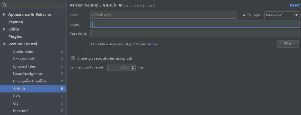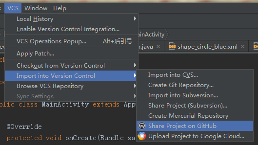 在Android Studio的Setting里面分别设置git和github。如下图所示: