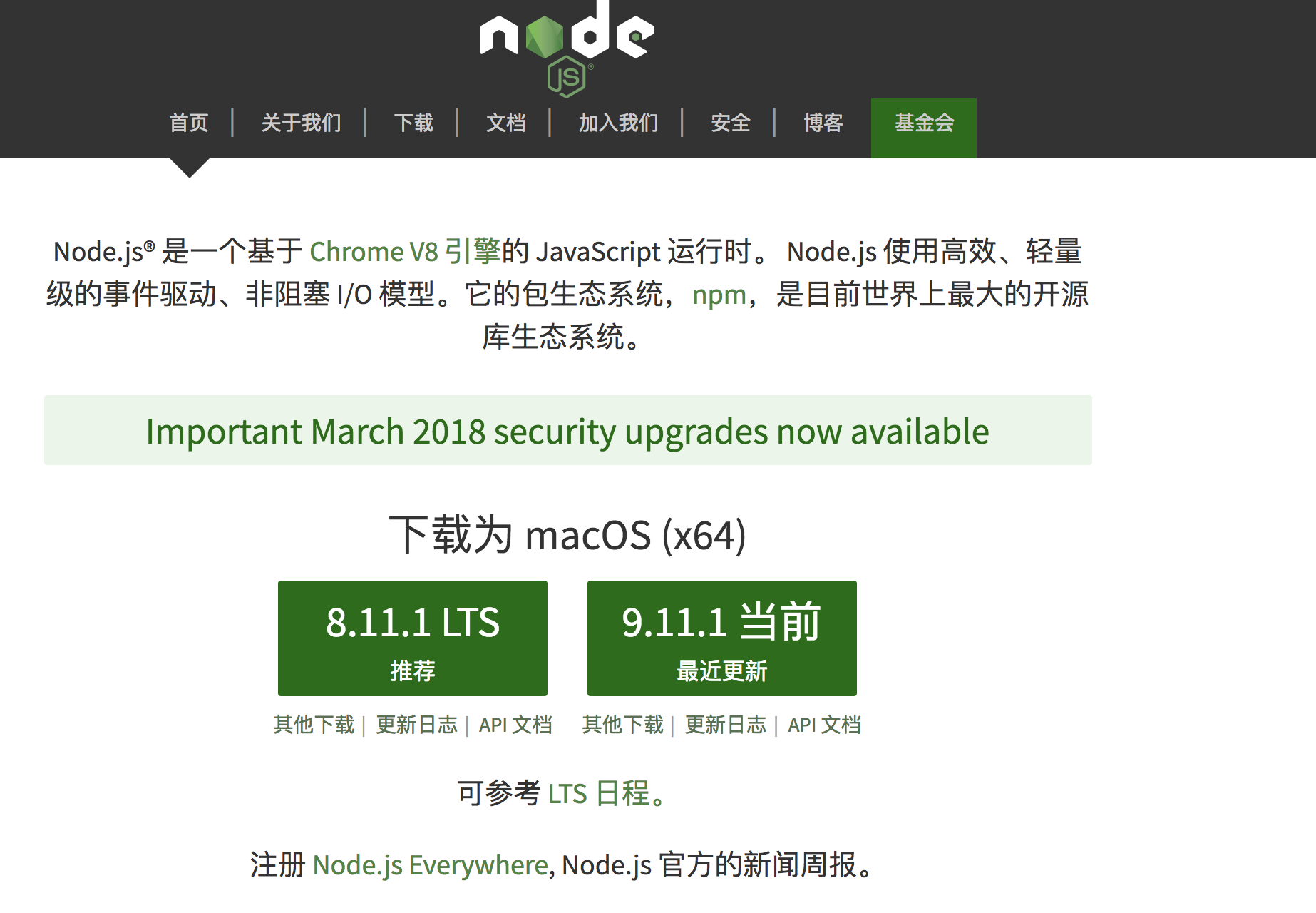 我这里不按照网上或者React Native中文网写的用命令行安装Node.js,个人不习惯,直接去Node.js官网下载