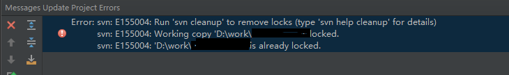 最近在从svn上更新代码的时候发现无法更新,会报错,原因是工程已经被locked,也就是被锁定了。