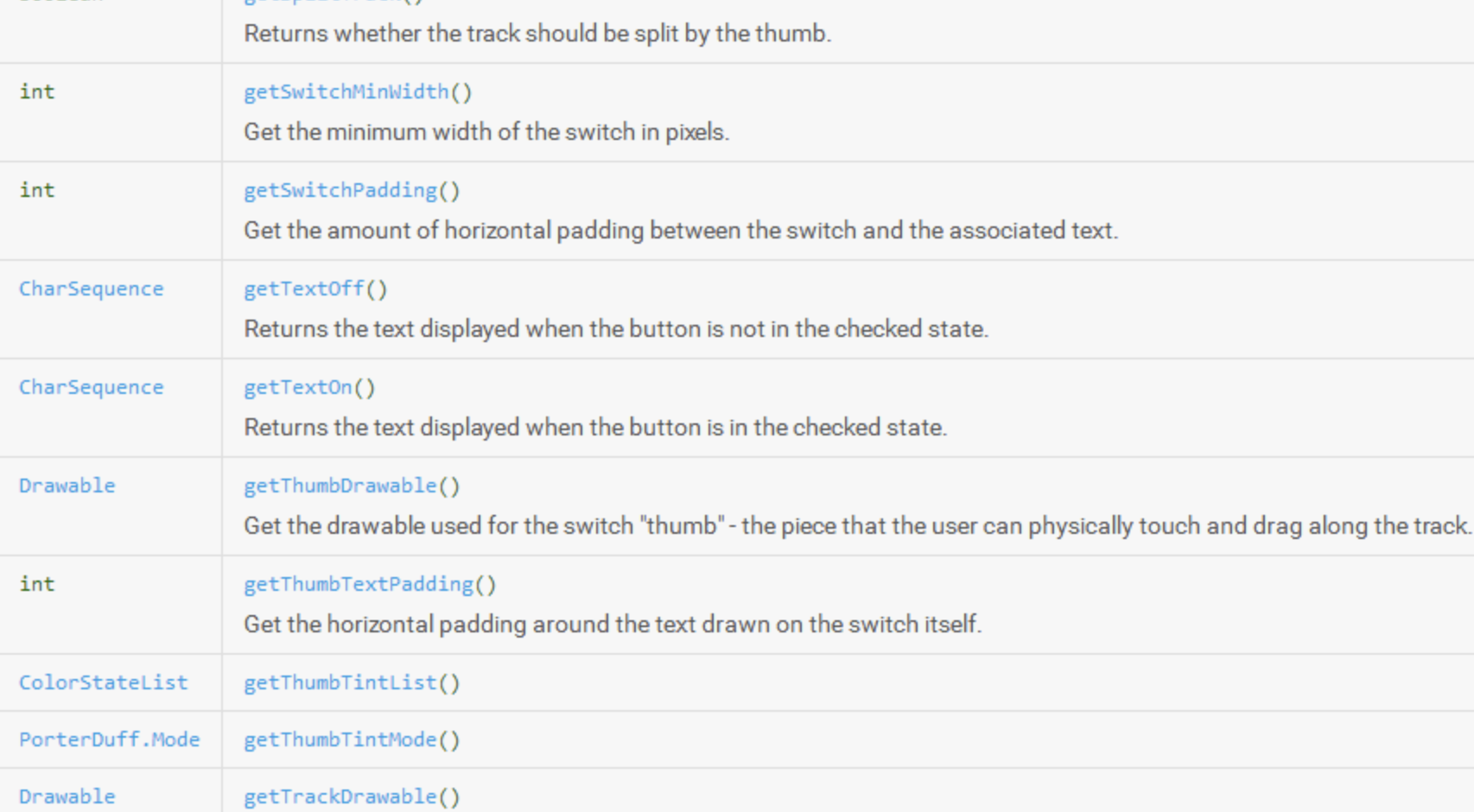 可以看到,除了在Xml里面设置属性,Google还提供了这些方法进行设置,这里就不在写了,跟Xml的效果一样。