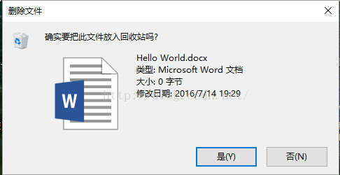 首先呢,比如我桌面上有一个docx文档,我想删除它,但是呢当我删除的时候我发现弹了一个提示框,让我选择是否删除,当然呢这是微软为了防止我们误删除而提供的。但是我不想要它!