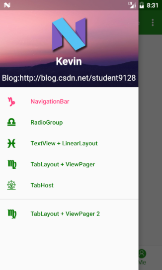 这个Demo里还同时使用了DrawerLayout, ToolBar, NavigationView, SnackBar, 有需要的也可以点进去查看。