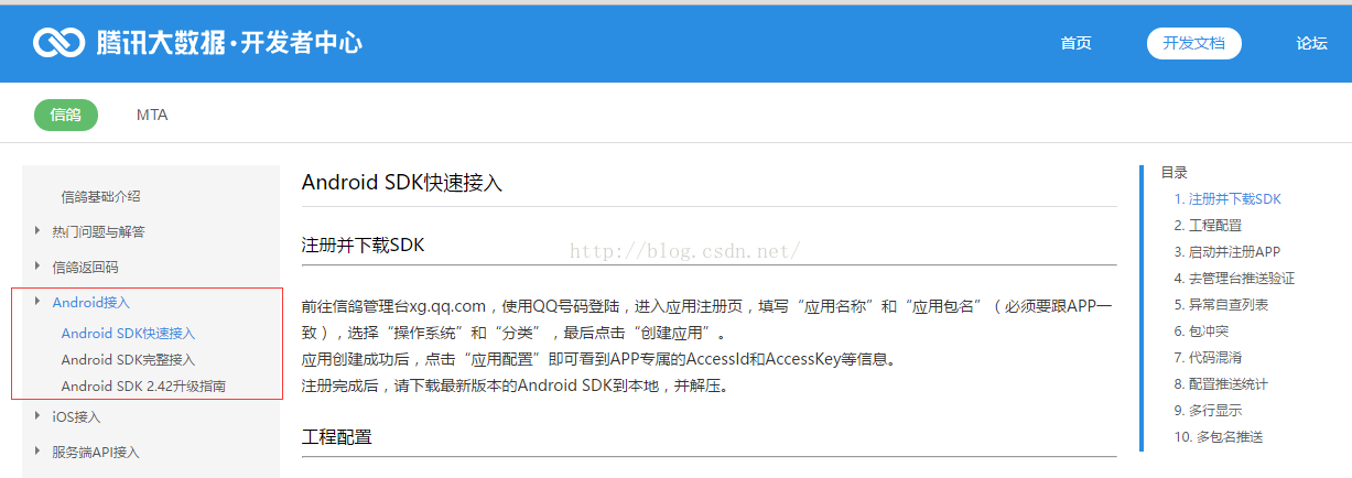 首先就是去找到官方文档,没做过的话,就先按照文档一步一步来,虽然文档介绍的并不深入,不过还是很通俗易懂的,各种问题后续再解决。百度一下腾讯信鸽进入官网登录下,找到开发者中心: