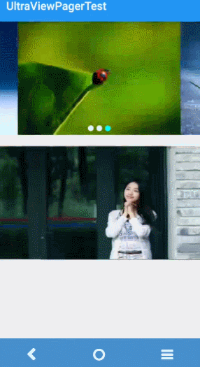 | public class MainActivity extends AppCompatActivity { private UltraViewPager mUltraViewPager, mUltraViewPager2; private int[] imageArr = new int[]{R.drawable.ic_image01, R.drawable.ic_image02, R.drawable.ic_image03}; private int[] imageArr2 = new int[]{R.drawable.ic_image04, R.drawable.ic_image05, R.drawable.ic_image06}; private UltraPagerAdapter mAdapter;